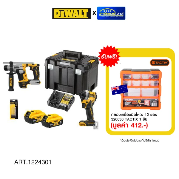 DEWALT ไขควง+สว่านโรตารี่ไร้สาย 20V...