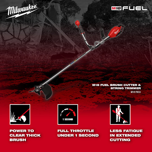 เครื่องตัดหญ้าไร้สาย M18 FBCU-0 Milwaukee เครื่องตัดหญ้าไร้สาย 18 โวลต์ เร่งพลังสูงลุดได้ภายใน 1 วินาที ขนาด 35-40 ซม. และใบมีดขนาด 23 ซม. ที่มีการออกแบบ แบบ 4 ฟัน