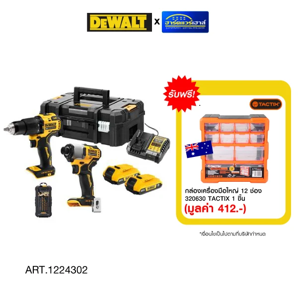 DEWALT สว่านกระแทก+ไขควงไร้สาย 20vD...