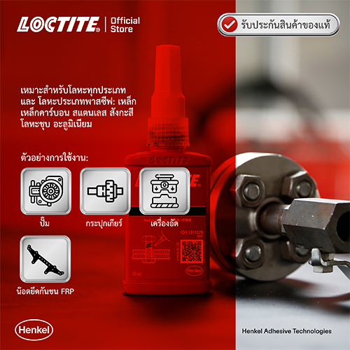 2. LOCTITE 243 ใช้ได้กับโลหะทุกชนิด เช่น สแตนเลส อะลูมิเนียม หรือ โลหะชุบ