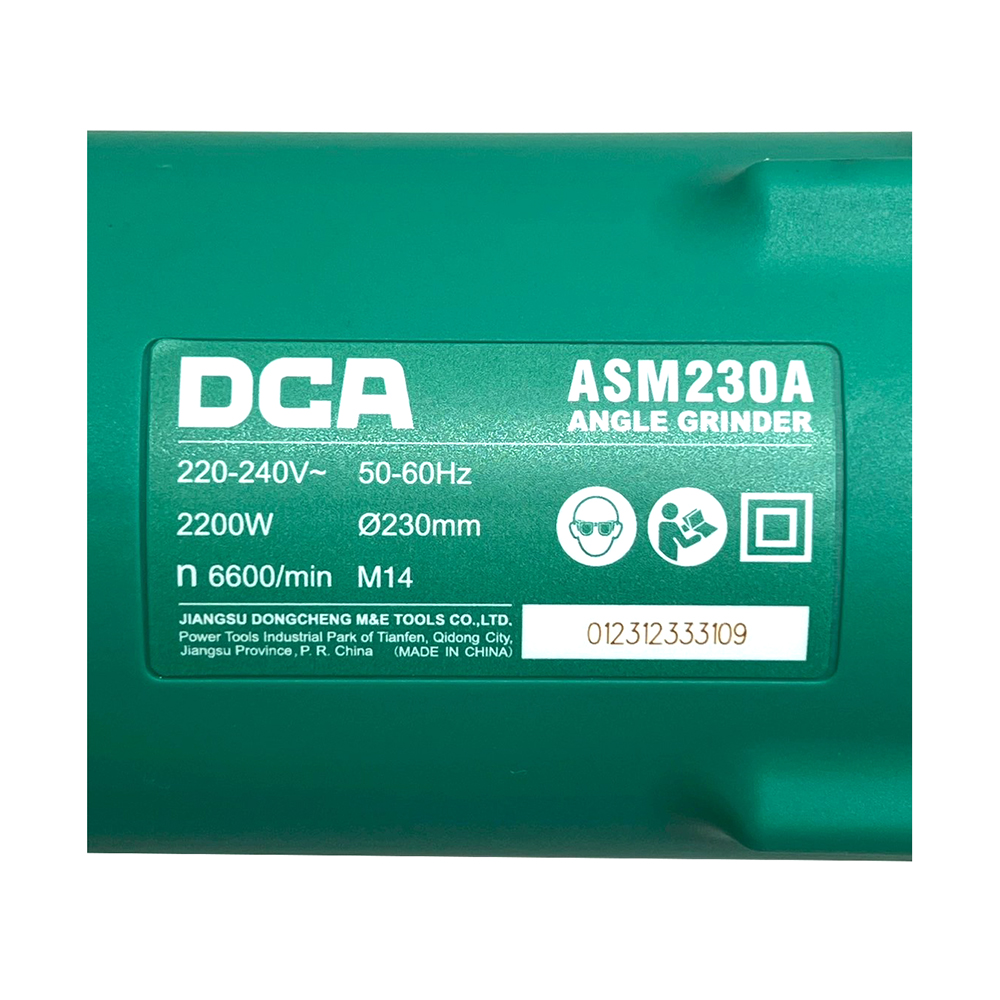 เครื่องเจียร 9 '' soft start ASM230A DCA อุปกรณ์เครื่องมือช่าง สำหรับงานเจีย งานขัด ตกแต่งผิวชิ้นงานต่างๆ มอเตอร์แรงบิดสูงเต็มกำลัง ให้กลไกประสิทธิภาพในการใช้งานดีเยี่ยม ตัวเครื่องผลิตจากวัสดุเอ็นจิเนียร์ริ่งพลาสติกคุณภาพดี ทนความร้อนได้สูง พร้อมสวิตช์ไกปืนขนาดใหญ่ ช่วยลดความเมื่อยล้าขณะใช้งาน