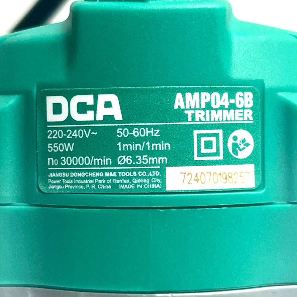 ทริมเมอร์ 6.35mm 550w AMP04-6B DCA อุปกรณ์เครื่องมือช่างใช้ในงานไม้ สำหรับงานเก็บรายละเอียด งานเจียรขอบ เก็บเข้ามุม งานเซาะร่องเล็กๆ ตีบัว ตีคิ้ว ลบมุมต่างๆ หรืองานตัดขอบโฟเมก้า ให้ประสิทธิภาพในการใช้งาน ปรับความลึกด้วยระบบฟันเฟือง ตัวเครื่องผลิตจากวัสดุคุณภาพดี มีความทนทาน