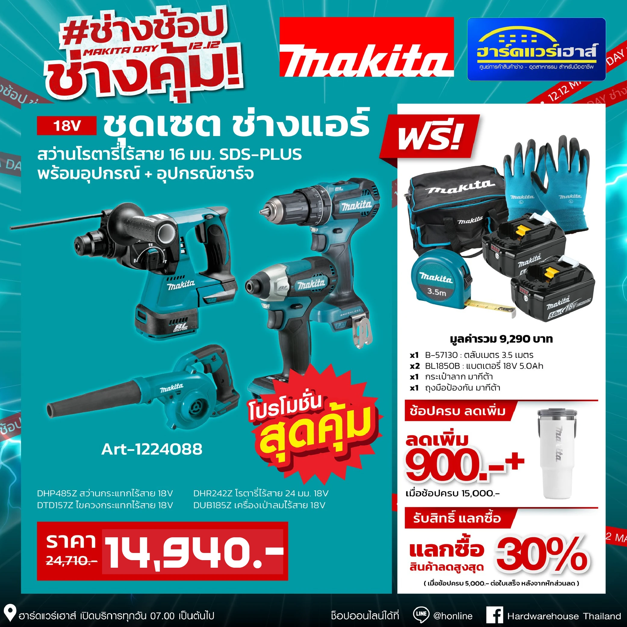 MAKITA สว่านกระแทกไร้สาย 18V 13 มม...