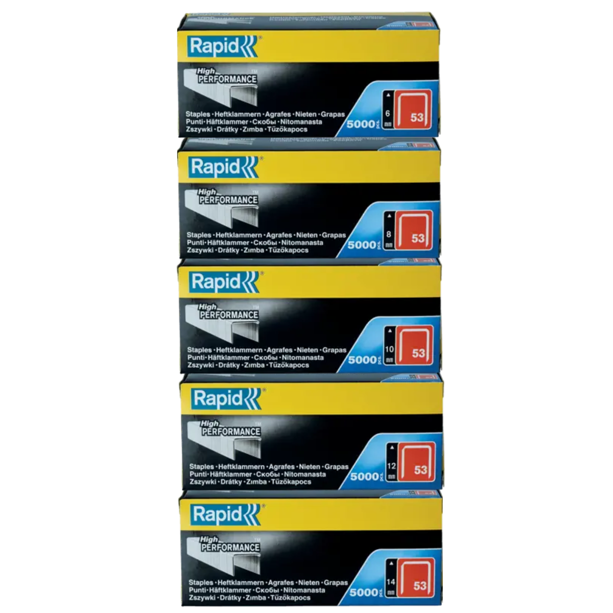 RAPID ลูกแม็กซ์ยิงบอร์ด ลวดยิงบอร์ด 53 6/8/10/12/14 MM. (5000 ตัว) ลวดเย็บแบนเคลือบสังกะสี คุณภาพสูง ปลายลวดคม ยิงทะลุ เหมาะสำหรับงานติดฉนวน พลาสติกบาง กล่องกระดาษ และพรมได้แม่นยำ หน้ากว้างพิเศษ ยึดแน่น ไม่หลุดง่าย เจาะวัสดุได้เรียบเนียน ด้วยขาที่ตัดอย่างแม่นยำ เหมาะกับงานช่าง งานตกแต่ง และงาน DIY เพิ่มประสิทธิภาพให้ทุกงานเย็บด้วยลวดเย็บที่ทั้งแน่น ทน และใช้งานง่าย