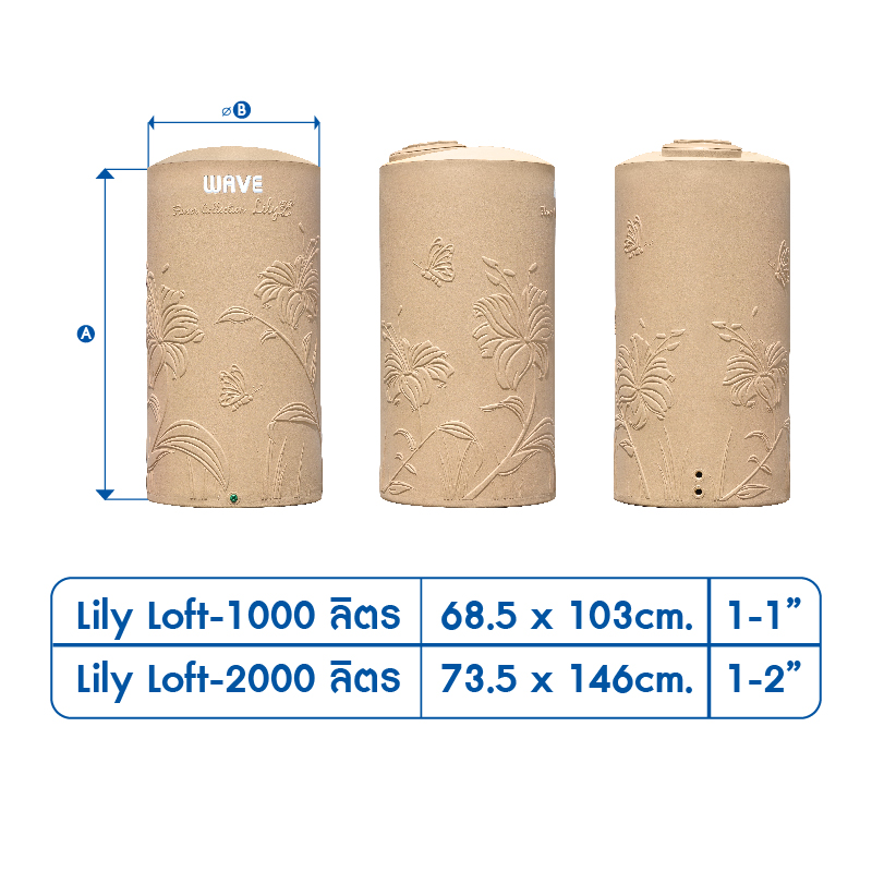 ถังน้ำบนดินLILY LOFT-1000 WAVE Loftbrown