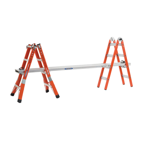 บันไดไฟเบอร์กลาสแบบปรับได้หลายตำแหน่ง FMT ซีรีส์ มีความหลากหลายและง่ายต่อการเคลื่อนย้าย การออกแบบให้ปรับรูปแบบได้ 5 ตำแหน่ง บันไดขึ้น 2 ฝั่ง, บันไดขาไม่เท่ากัน-ขั้นบันได, บันไดพาด, ฐานนั่งร้าน 2 ชั้น, บันไดติดผนัง เป็นบันไดแบบไฮบริดสามารถใช้กับการทำงาน 1 คนและ 2 คน โดยรับน้ำหนักบรรทุก 300 ปอนด์ต่อข้าง พื้นกันลื่นและปลายบันไดแบบบานออกเพื่อการรองรับที่มั่นคงยิ่งขึ้น รางโค้งเรียบช่วยให้ปีนได้สบายกว่า ด้วยการใช้งานที่หลากหลาย บันไดไฟเบอร์กลาส Multi-Purpose นี้จึงเหมาะกับทุกความต้องการในการใช้งานของคุณ