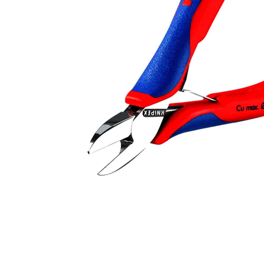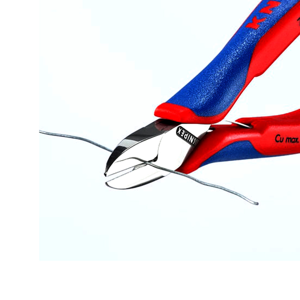 คีมตัดเฉียงอิเล็กทรอนิกส์ สำหรับงานตัดละเอียด เช่น งานอิเล็กทรอนิกส์และงานกลศาสตร์ละเอียด ปรับแต่งตามน้ำหนักเพื่อให้สัมผัสที่กระชับมือยิ่งขึ้นขณะใช้งาน ข้อต่อกล่องแข็งแรง ปราศจากการสั่นสะท้าน สปริงคู่แรงเสียดทานต่ำ ช่วยให้เปิดได้นุ่มนวลและสม่ำเสมอ น้ำยาขัดเงาหรือน้ำยาขัดเงากระจกพร้อมฟิล์มน้ำมันละเอียดช่วยป้องกันสนิมได้อย่างมีประสิทธิภาพ ปราศจากปัญหาวงจรไฟฟ้าขัดข้องจากการลอกของโครเมียมจากเครื่องมือชุบ คีมยังผ่านกระบวนการชุบแข็งด้วยเลเซอร์ ความแข็งของคีมอย่างน้อย 60 HRC ปลอกรัดที่แคบขึ้นถึงหัวคีมช่วยให้จับ