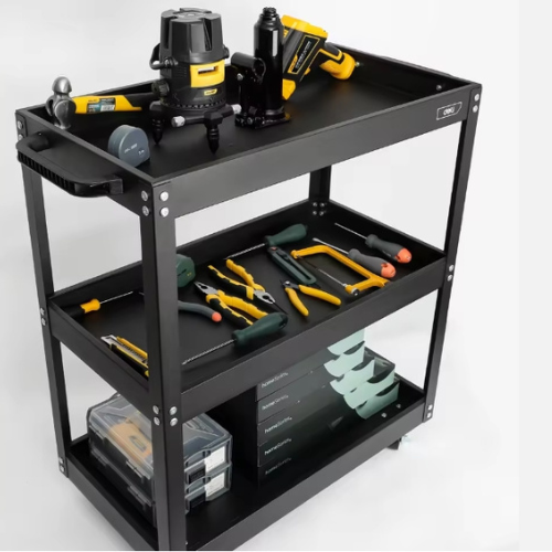 รถเข็นเครื่องมือช่าง 3 ชั้น ล้อยางมีทั้งหมด 4 ล้อ ช่วยประหยัดพื้นที่ในการจัดเก็บเครื่องมือให้เป็นระเบียบเรียบร้อย เคลื่อนที่ได้ง่ายทั้งพื้นผิวเรียบ และขรุขระ สะดวกสบายในการใช้งาน สามารถหมุนเปลี่ยนทิศทางได้อย่างอิสระ สามารถประกอบได้ง่าย ๆ ด้วยตัวเอง